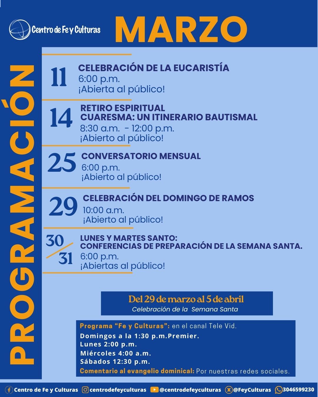 📍 Centro de Fe y Culturas – Calle 10 Sur #45-178, Sector Aguacatala.